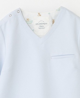 ジェラートピケ&クラシコ パターンプルオーバースクラブ ライトブルー×バスタイムベア柄 EL