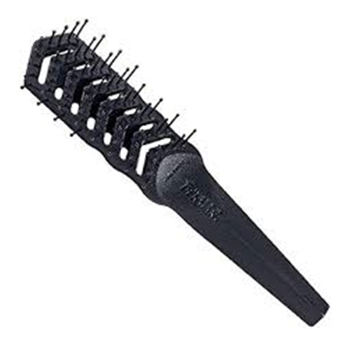 ドライヤー仕様を基本に考え抜かれたブラシです。ボディ本体が熱の通風性を考えたシェブロンスタイルになっており、ブラシの動きとドライヤーの熱のコンビネーションにより、すばやくセットができる事を重点に考えられたブラシです。