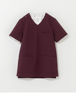 ジェラートピケ&クラシコ パターンプルオーバースクラブ バーガンディー×ローズ柄 EL