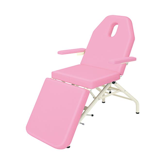 フェイシャル等のエステ専用に開発されたマッサージベッド。ベッドの乗降が容易なハネ上げ式アームレストを採用。