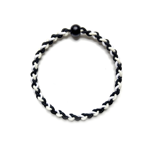 編み込んだゴムのデコボコが、髪をやさしく結びます。