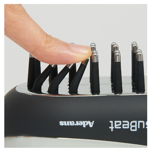 頭皮とフェイスとボディのケアができるブラシ型の美容機器アデランスのサロンでの施術、スカルプケアプログラムでも採用されているEMS、赤色LEDを搭載しており、ご自宅で手軽に、お顔をスッキリと引き締めて、健康的な頭皮環境を整えます。